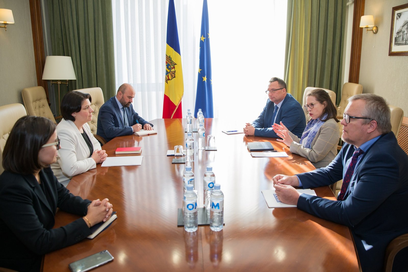 Părțile au făcut un schimb de opinii privind situația de securitate din regiune și stadiul actual al procesului de reglementare transnistreană. Șefa Executivului a menționat că, din cauza războiului din Ucraina, formatul de negocieri 5+2 a fost înghețat. Cu toate acestea, Guvernul de la Chișinău continuă dialogul cu Tiraspolul și optează în continuare pentru soluționarea pașnică a conflictului și menținerea păcii și a stabilității.