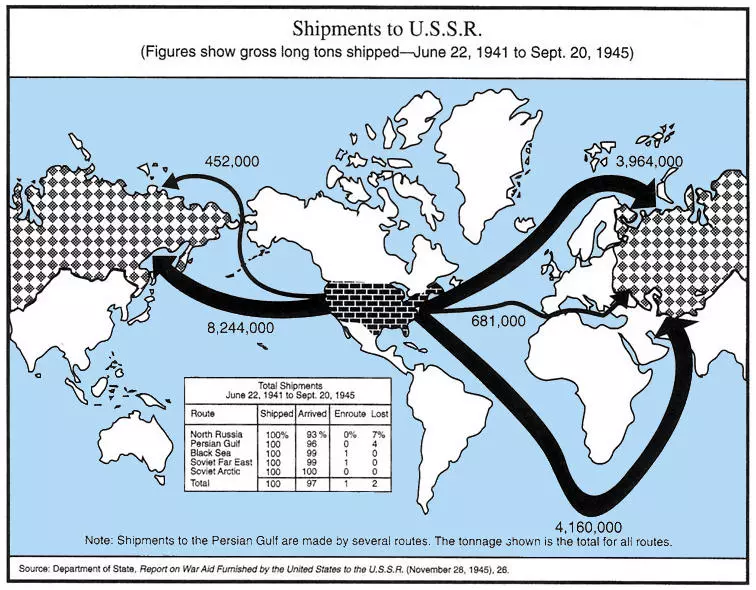 De asemenea, mulți istorici afirmă cu tărie că fără acest sprijin american, colosul sovietic s-ar fi prăbușit în perioada critică de la începutul operațiunii Barbarossa.