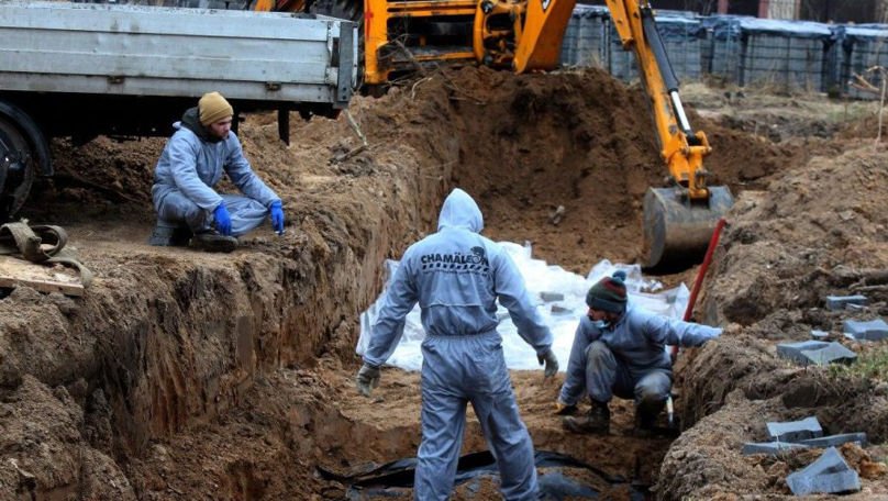 Pe lângă gropile comune, trupurile neînsuflețite se găsesc în subsoluri, beciuri, dar și în fântâni, potrivit UNIAN. Actualmente sunt circa 300 de grupuri care investighează moartea civililor, iar numărul exact al victimelor atrocităților se stabilește încă.