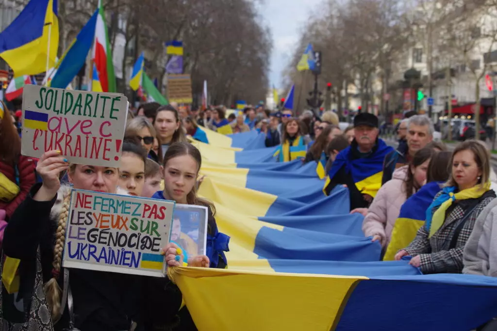 Mii de oameni au ieșit pe străzile Parisului pentru un marș de solidaritate. Steaguri ucrainene, afișe care cereau o presiune sporită asupra Kremlinului și sloganuri care cereau o pace justă – acesta nu a fost doar un gest de sprijin, ci și un semnal intra-european.