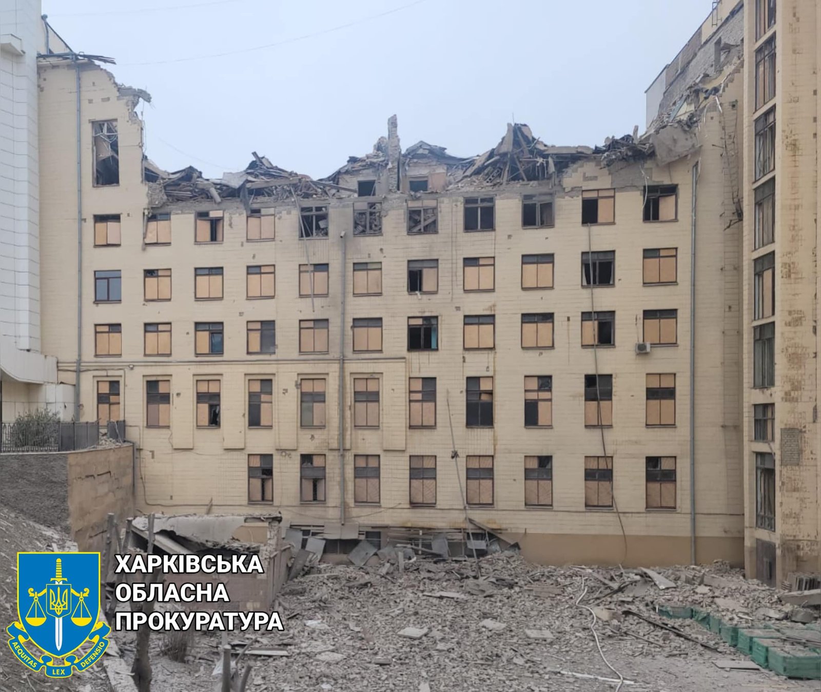 Харьковская областная прокуратура опубликовала фотографии разрушенного университета.