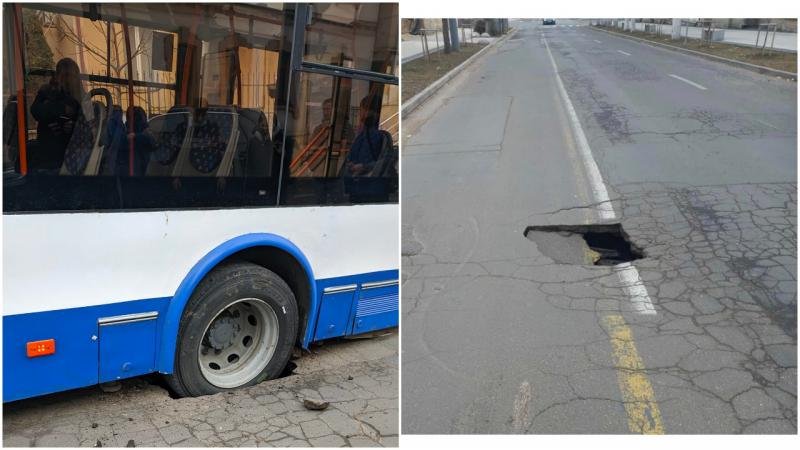 Două rute din Capitală își modifică itinerarul – asfaltul s-a surpat chiar sub roata troleibuzului