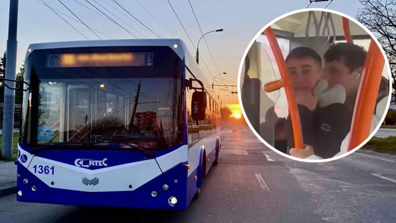 Imagini revoltătoare: Niște tineri au atacat călătorii unui troleibuz